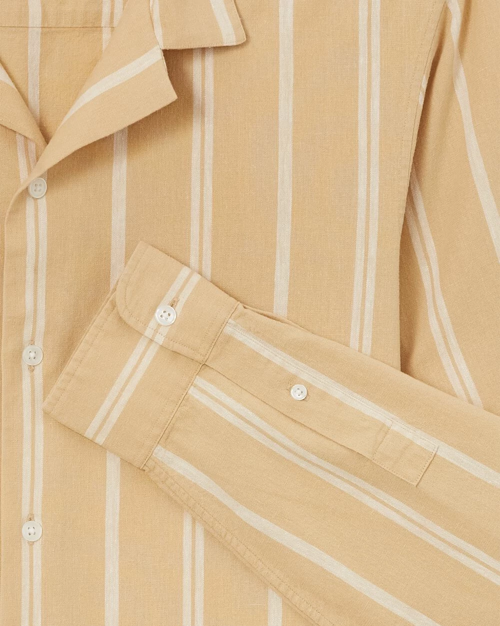 Pared back but polished. A camp collar gives the button-down shirt a casual, versatile feel. Made from a striped lightweight linen blend and cut for a slim fit. By buying cotton products from us, you’re supporting more sustainable cotton farming. Learn more at bettercotton.org/learnmore