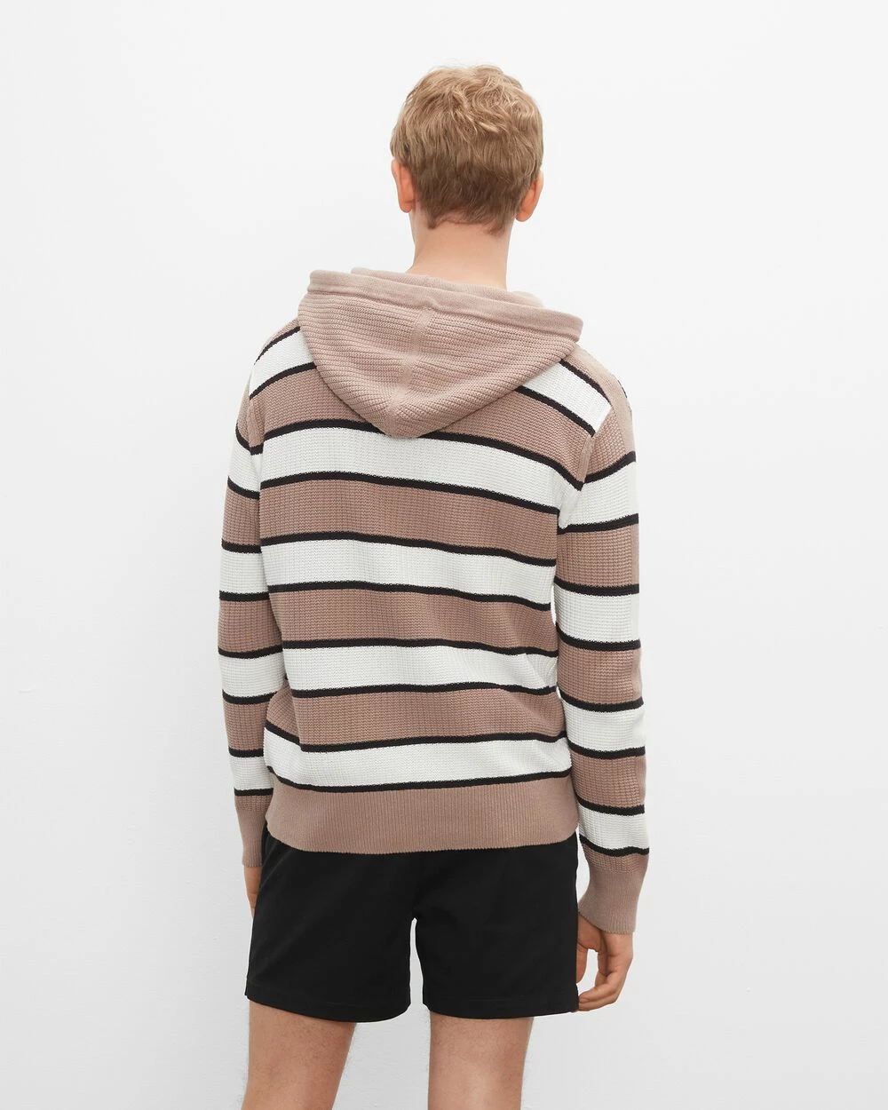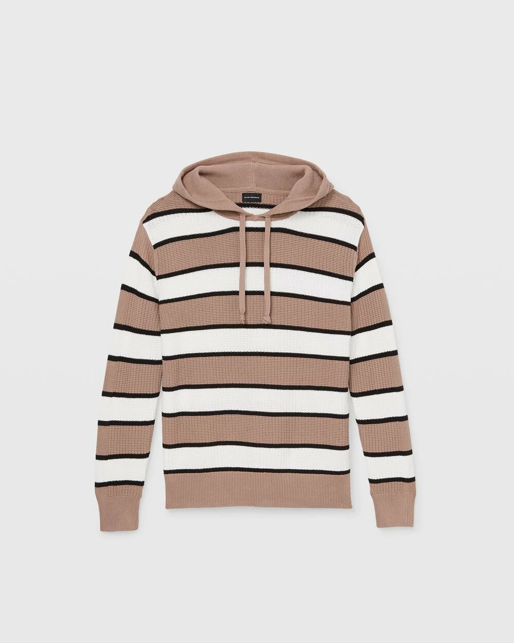 A riff on the essential hoodie. Bold stripes and a chunky knit redefine the classic hoodie into something more visually interesting. Think casual-cool.