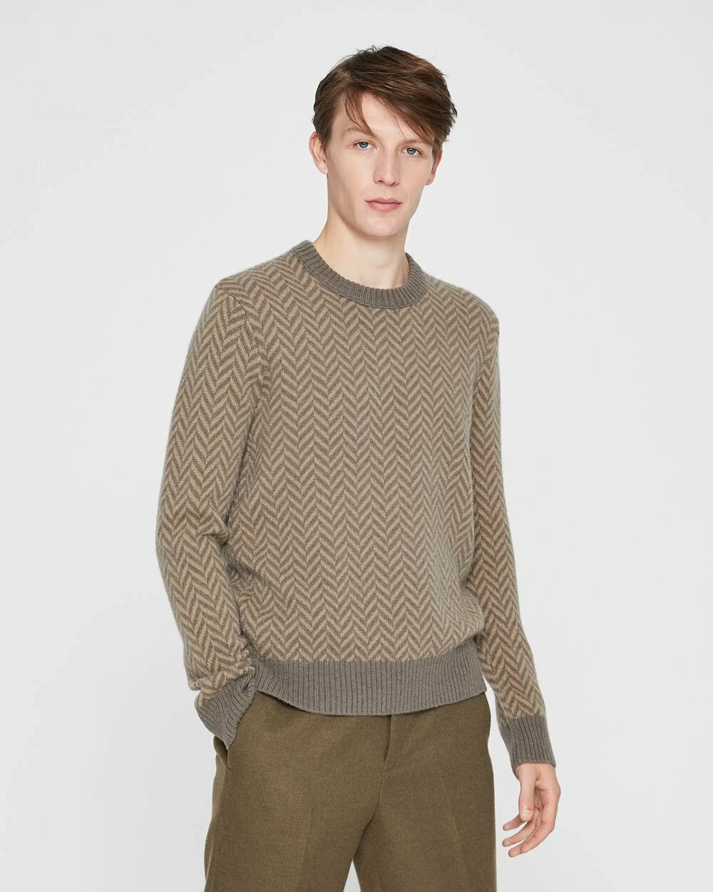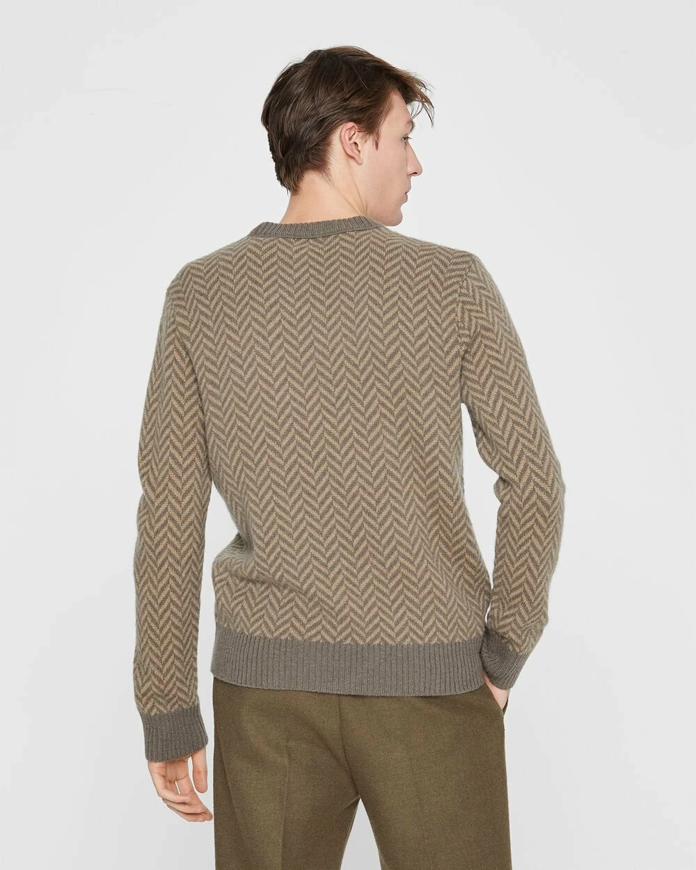 This classic crewneck sweater is a warm welcome for the cooler months with its bold herringbone-knit blend of wool and alpaca hair.