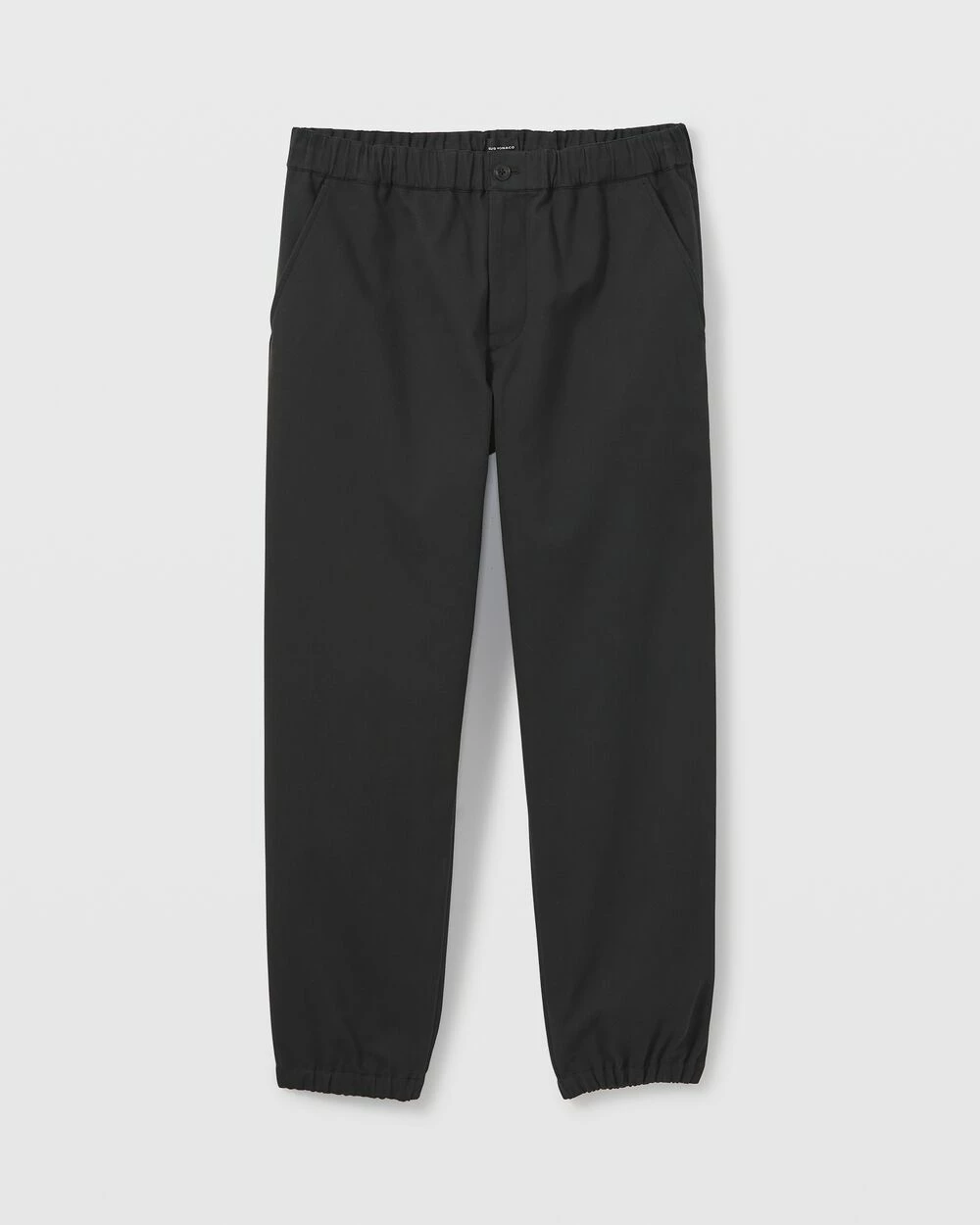 - Cased elastic waistband; two side pockets; elasticized cuffs; two back pockets
