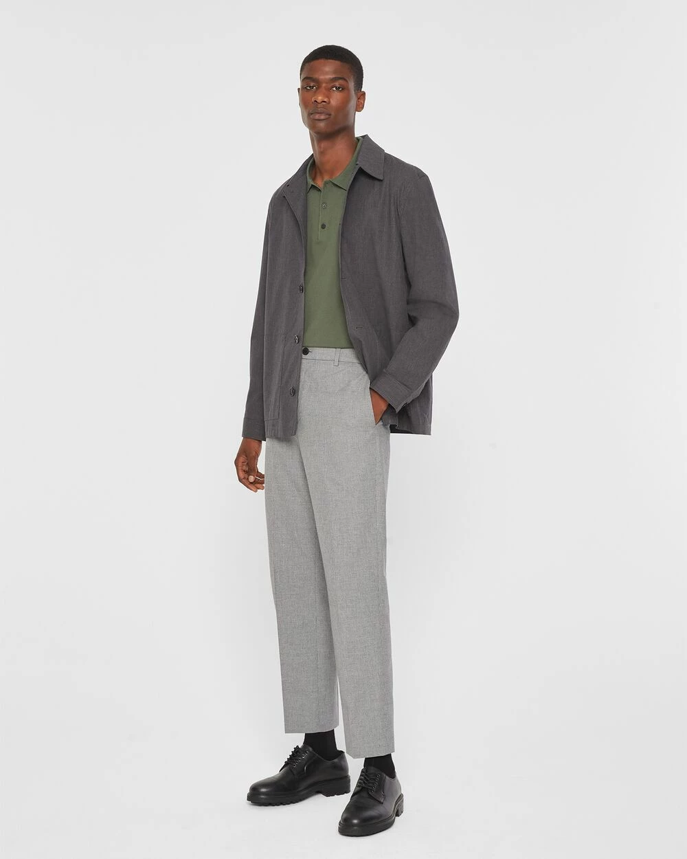 A timeless chore jacket designed for lightweight layering. This casually refined topper is made of a textural cotton blend to carry you from summer to fall with ease, comfort, and class.