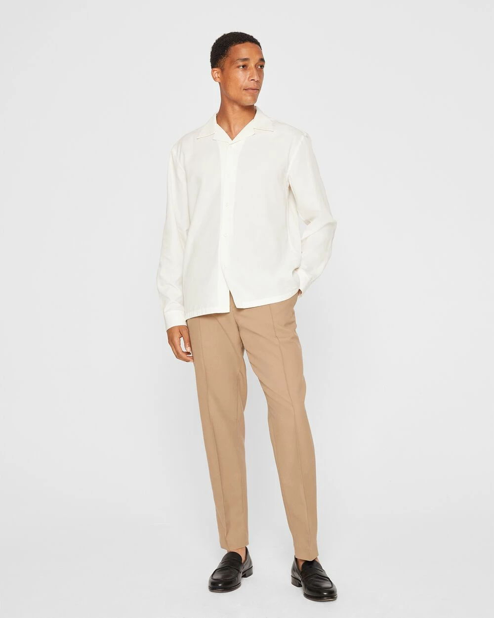 A camp collar and a relaxed fit gives the button-down shirt a casual, versatile feel. Made from a lightweight cotton-lyocell blend for comfort.
