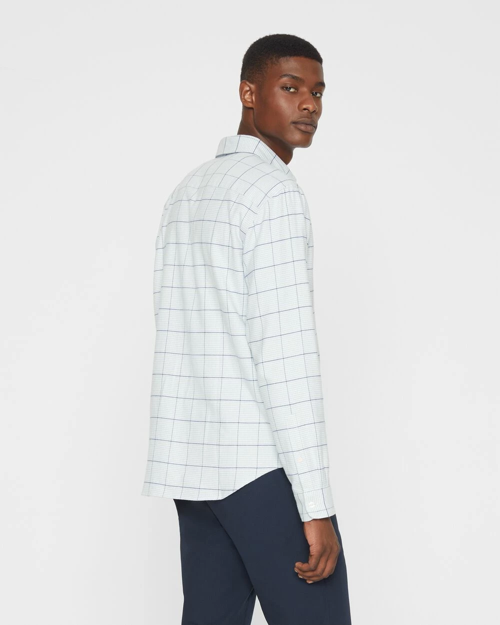 - Button-down spread collar; one chest pocket; long sleeves; single-button barrel cuffs; back shoulder yoke; shirttail hem