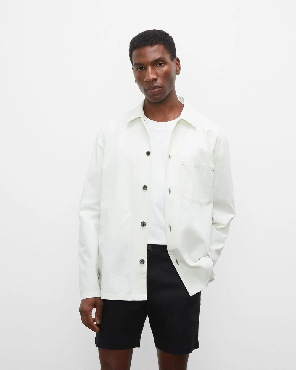 Work-life balance. A classic button-down shirt takes design cues from casualwear to create a look that’s laid-back and layer-friendly but still has a hint of polish. This cotton workshirt features a medium chest pocket and a relaxed silhouette for casual nights and weekends ahead.