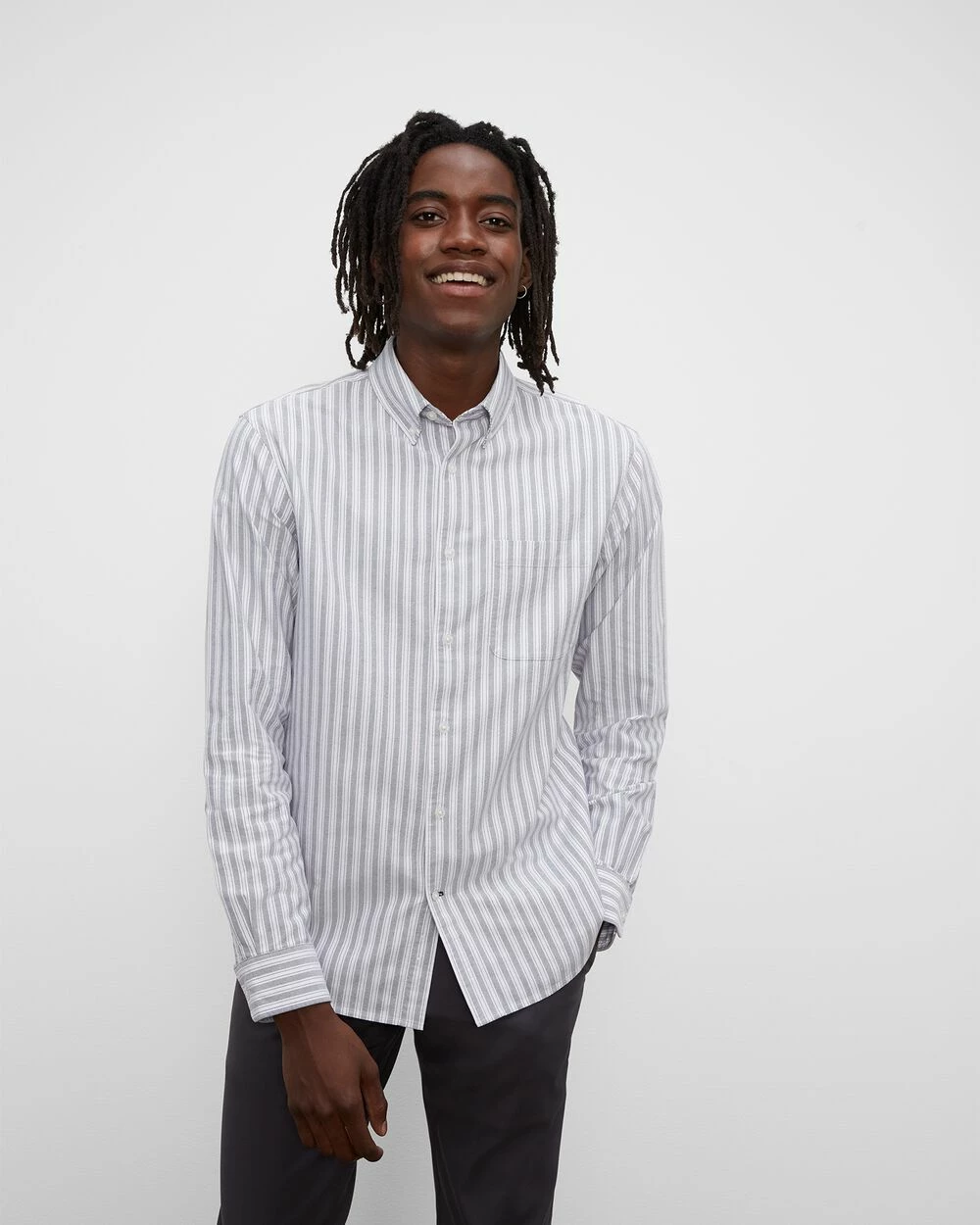 For every day. A timeless staple, precisely tailored in our slim fit. In a mixed-stripe washed cotton Oxford cloth for soft structure.
