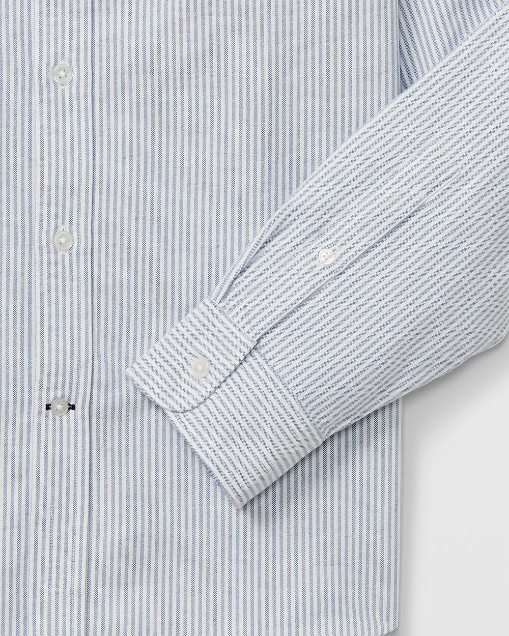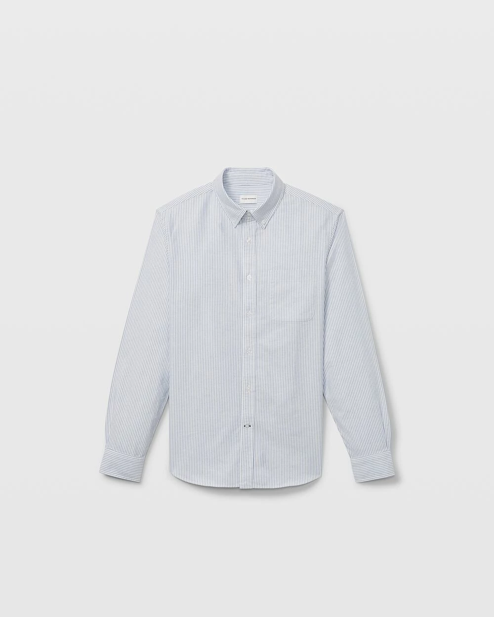 - Button-down point collar; chest pocket; long sleeves; two-button barrel cuffs; back shoulder yoke; shirttail hem with reinforced side-seam slits; shell buttons