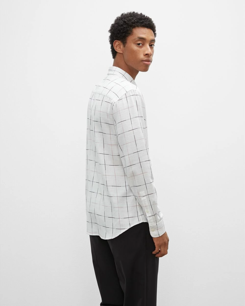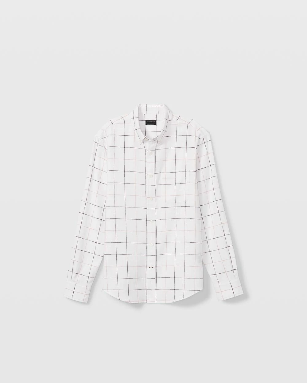 Pillar piece. The always reliable button-down shirt in our signature slim fit with a classic windowpane plaid pattern. By buying cotton products from us, you’re supporting more sustainable cotton farming. Learn more at bettercotton.org/learnmore