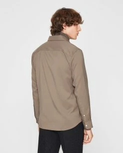 - Button-down spread collar; one chest pocket; long sleeves; single-button barrel cuffs; back shoulder yoke; shirttail hem