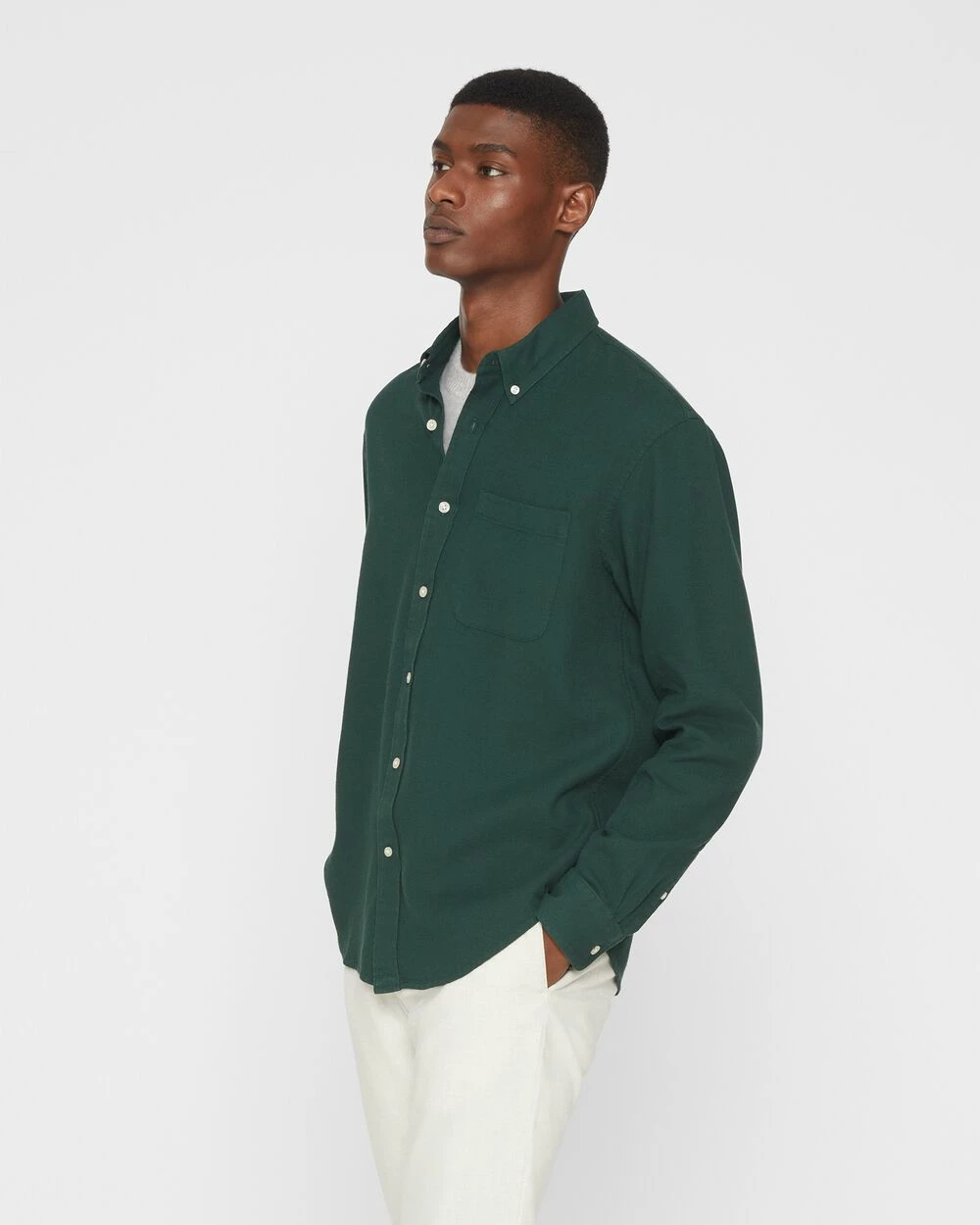 - Button-down point collar; chest pocket; long sleeves; single-button barrel cuffs; back shoulder yoke; shirttail hem