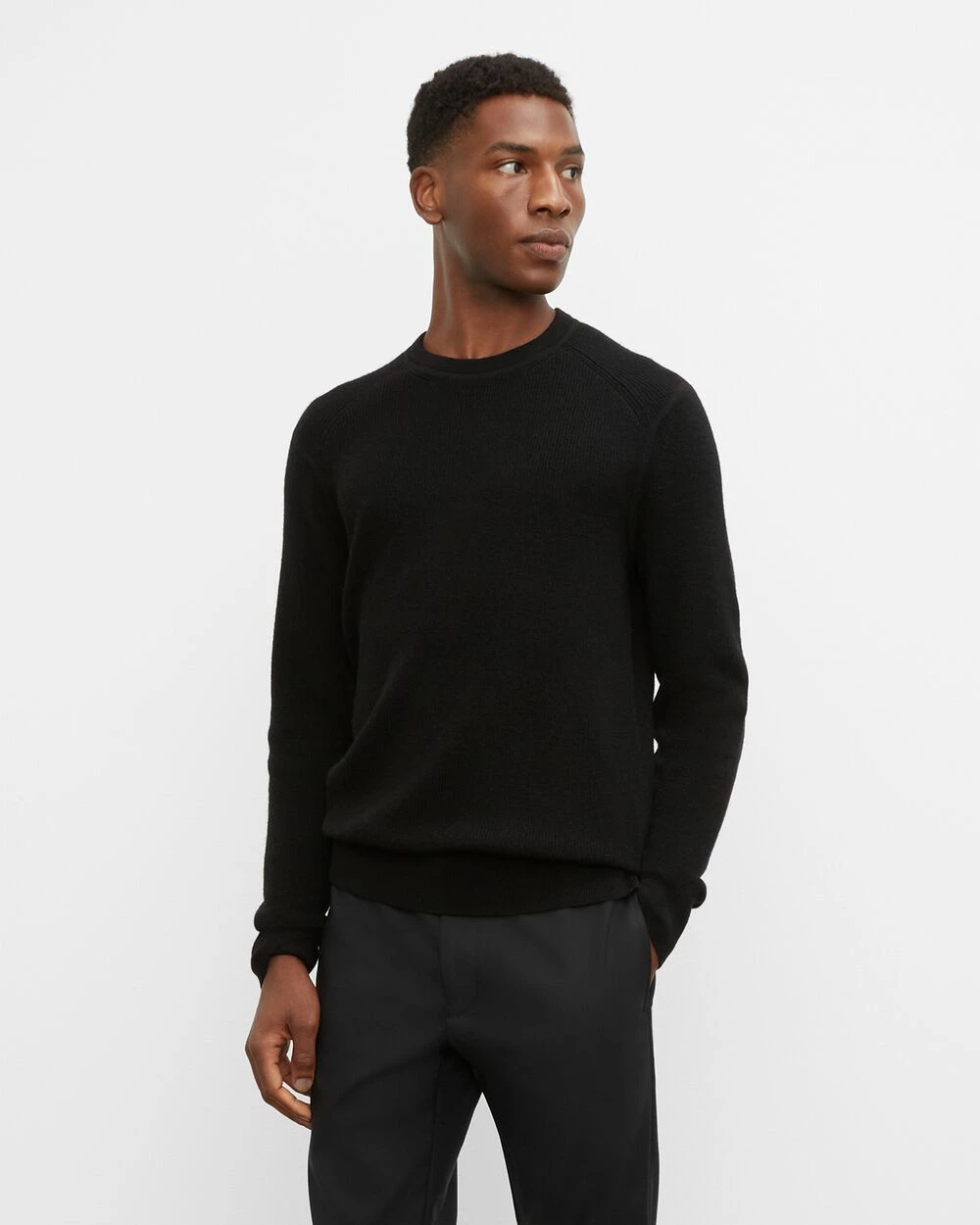 Something substantial. The essential crewneck sweater detailed with fine ribbing for the guy who wants texture in a more refined way. Made from 100% wool for all-season warmth.