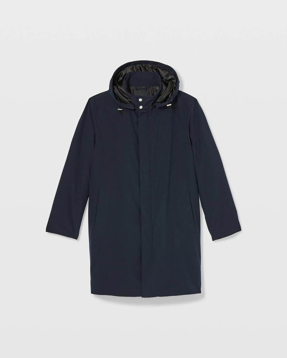 This above-average jacket features comfortable padding, a removable hood, and an elongated length for full protection from the elements. Made from a cool tech fabric with smooth lining.