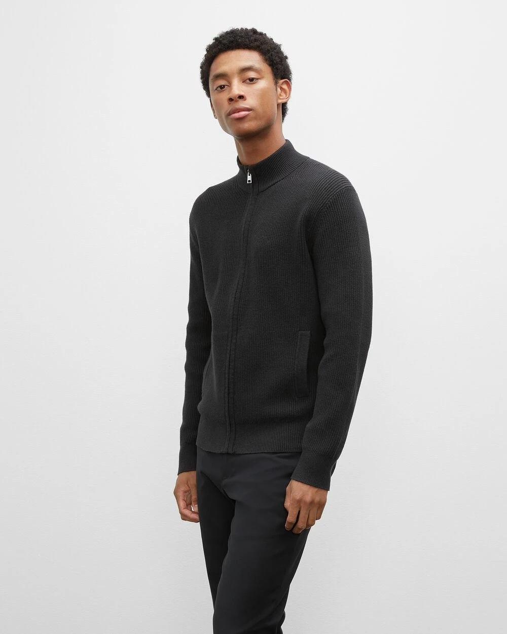Something with substance. A rich, lofty rib-knit brings significant warmth and refinement to this this zip-up jacket. Dignified but versatile, with two side pockets and a mock neck. By buying cotton products from us, you’re supporting more sustainable cotton farming. Learn more at bettercotton.org/learnmore