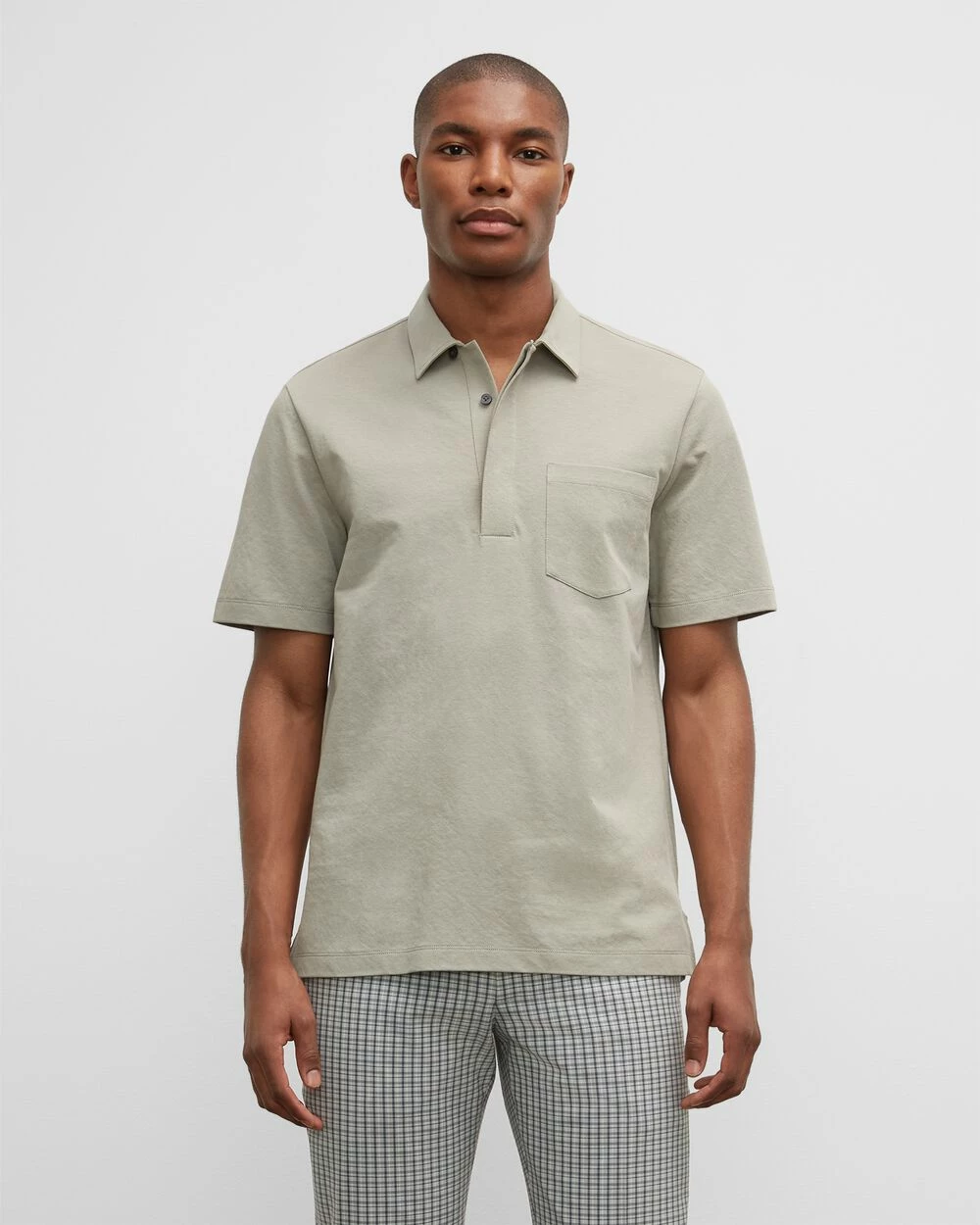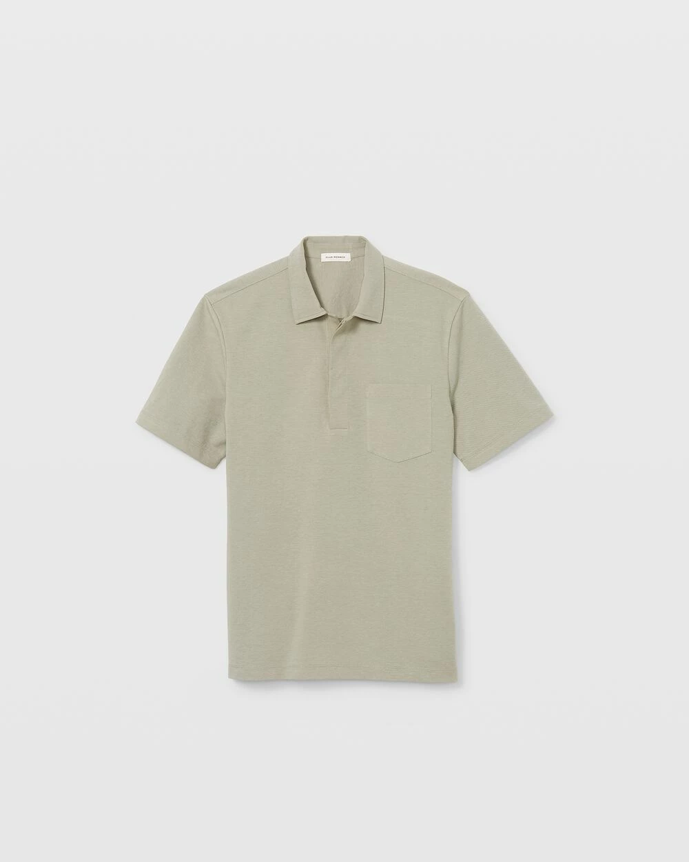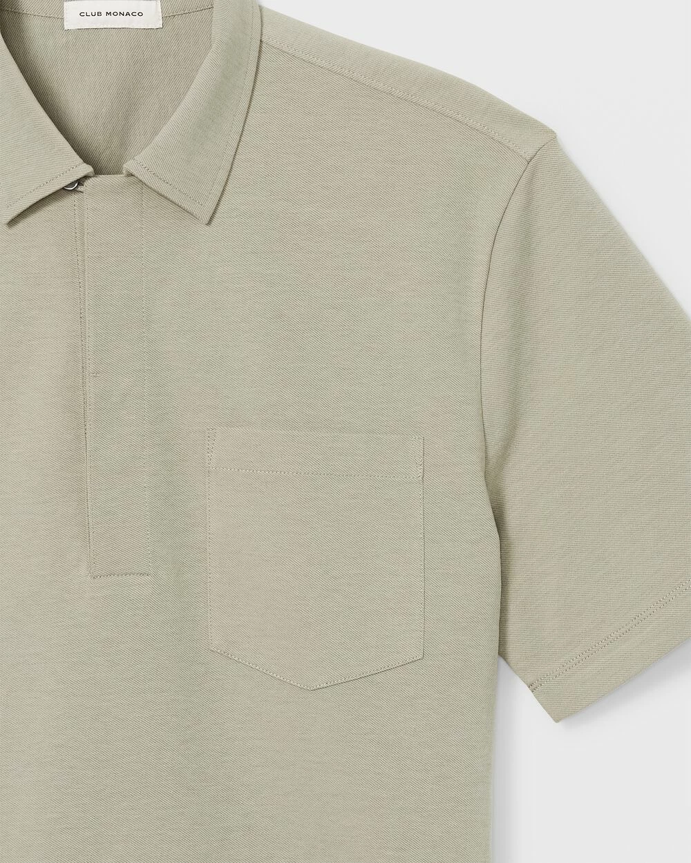 Laid-back luxury. The traditional front-pocket camp shirt takes on a new form with a concealed button placket and a polished pique knit. The result is a refined top that translates from business to pleasure with ease.