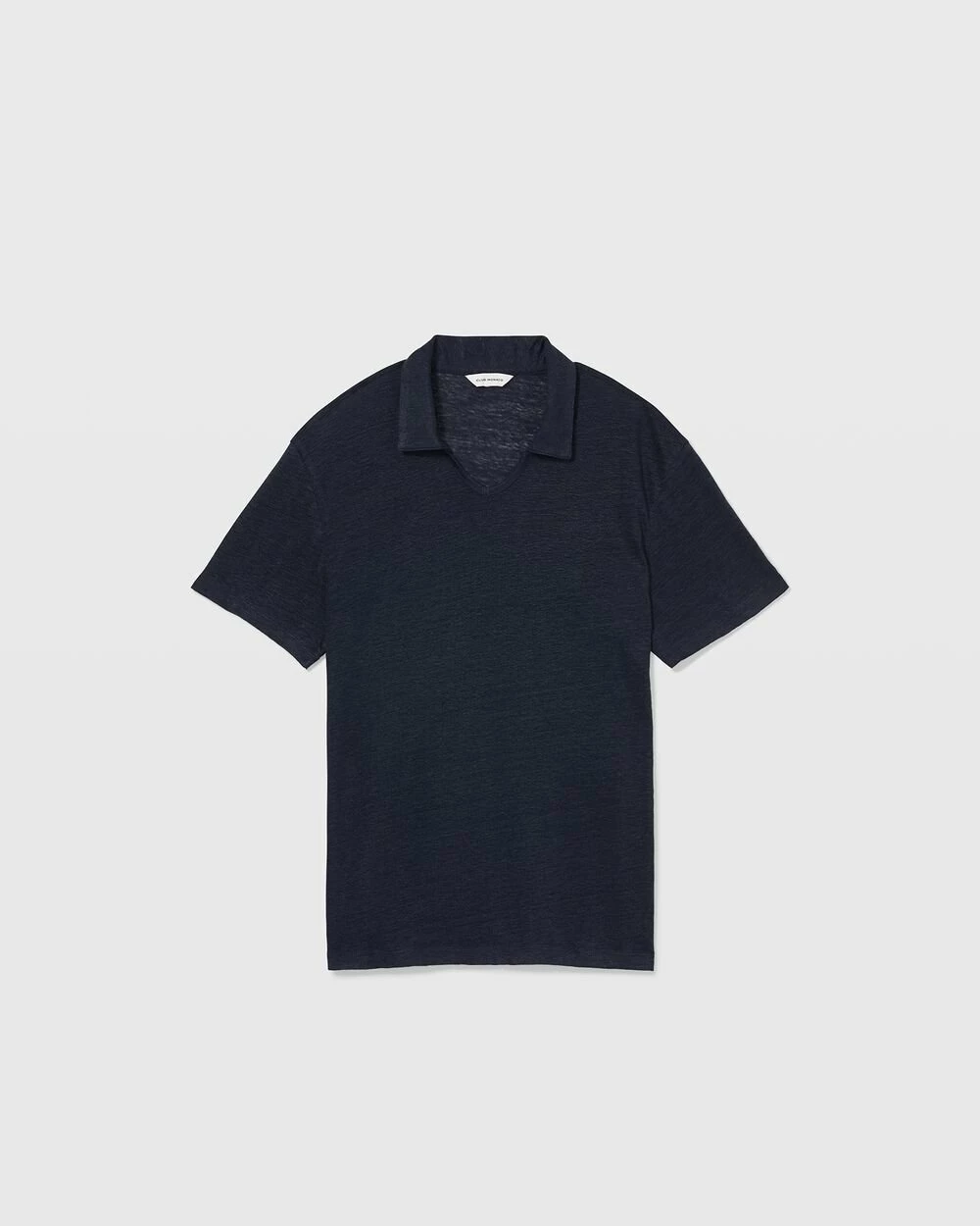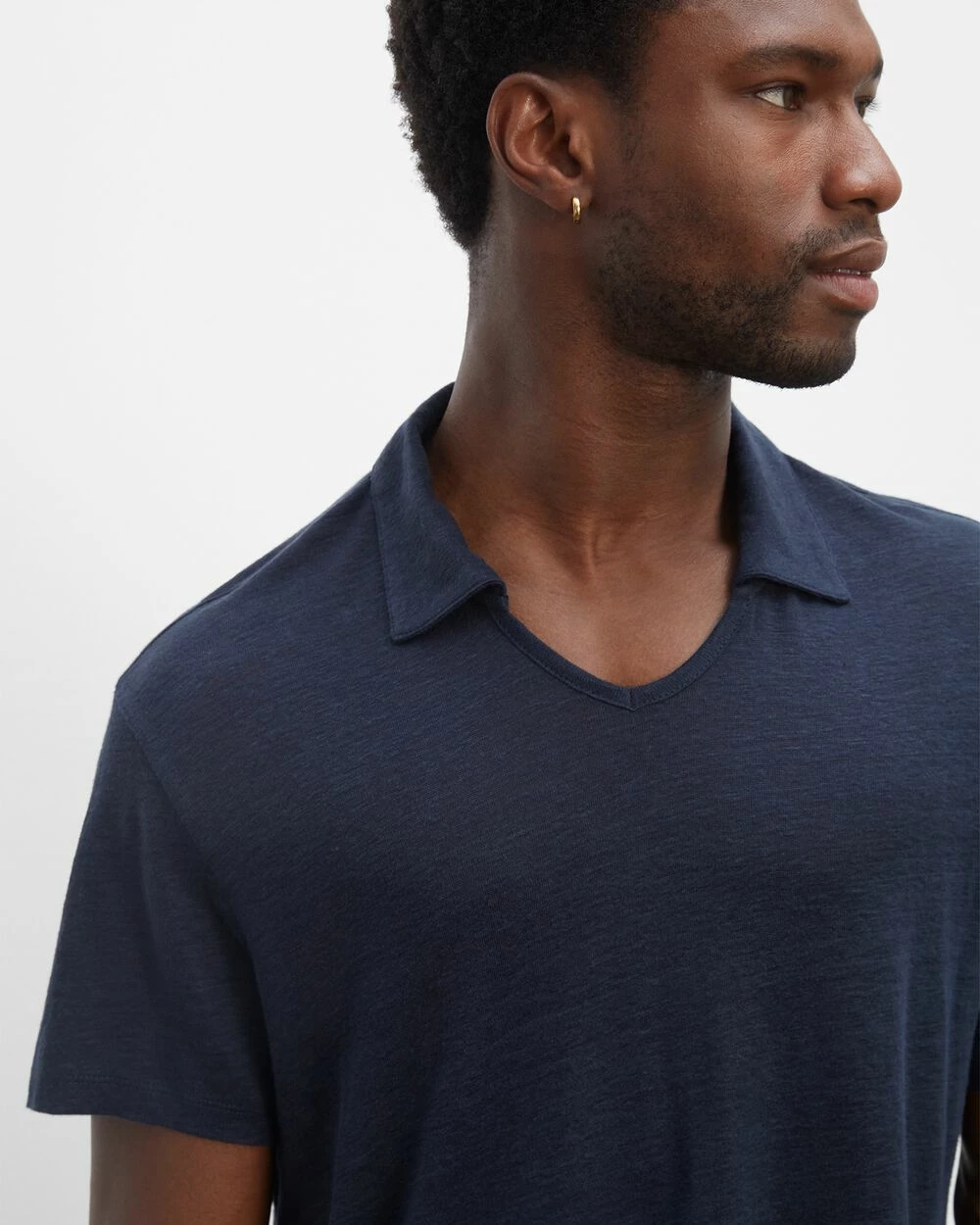 Made from 100% linen for breezy comfort, this popover shirt is distinguished by its classic spread collar and rounded V-neck for a refined take on casualwear.