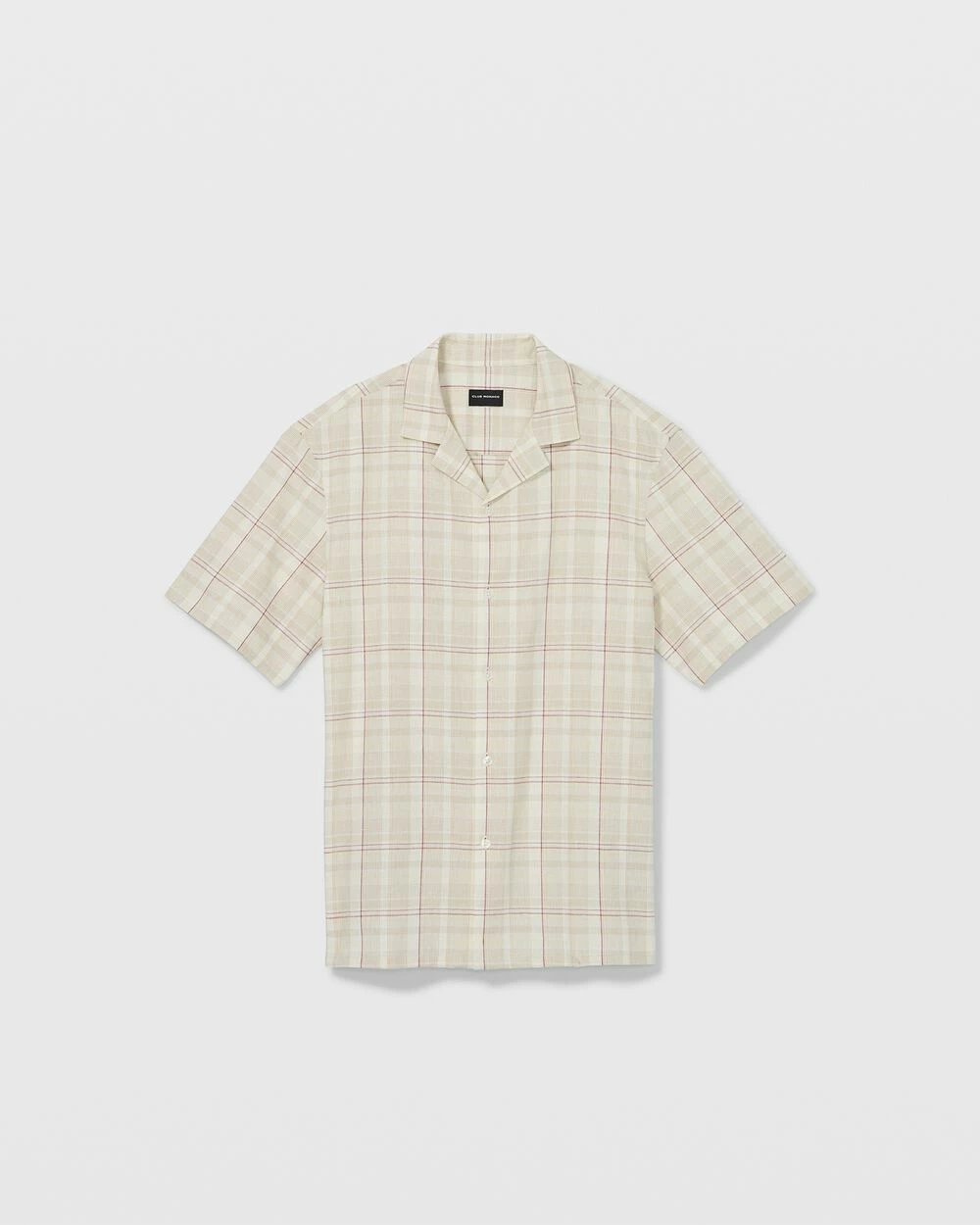 - Camp collar; short sleeves; back shoulder yoke; straight hem with side-seam slits