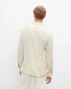 - Spread collar; two chest pockets; long sleeves; single-button barrel cuffs; shoulder yoke with two single pleats at back; shirttail hem