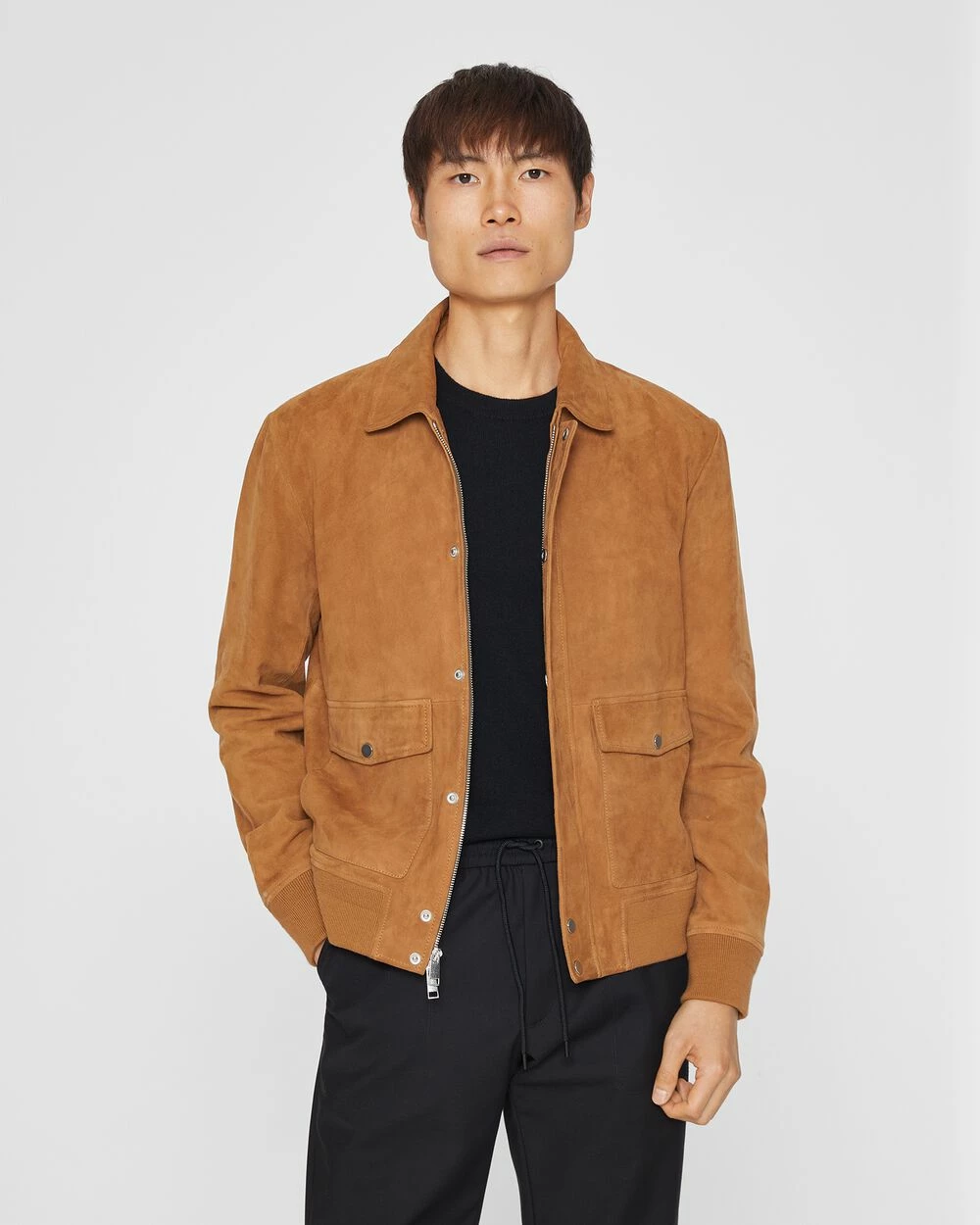Tailored for an impeccable fit, this suede bomber jacket is the definition of a better basic. In a supple suede with polished hardware and plentiful pocketing.