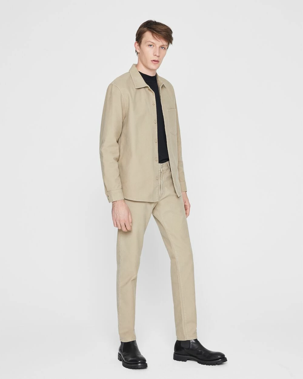 Our slimmest denim. A close fit and classic styling bring a polished, streamlined update to traditional jeans. In a stretch-cotton moleskin for superior softness.