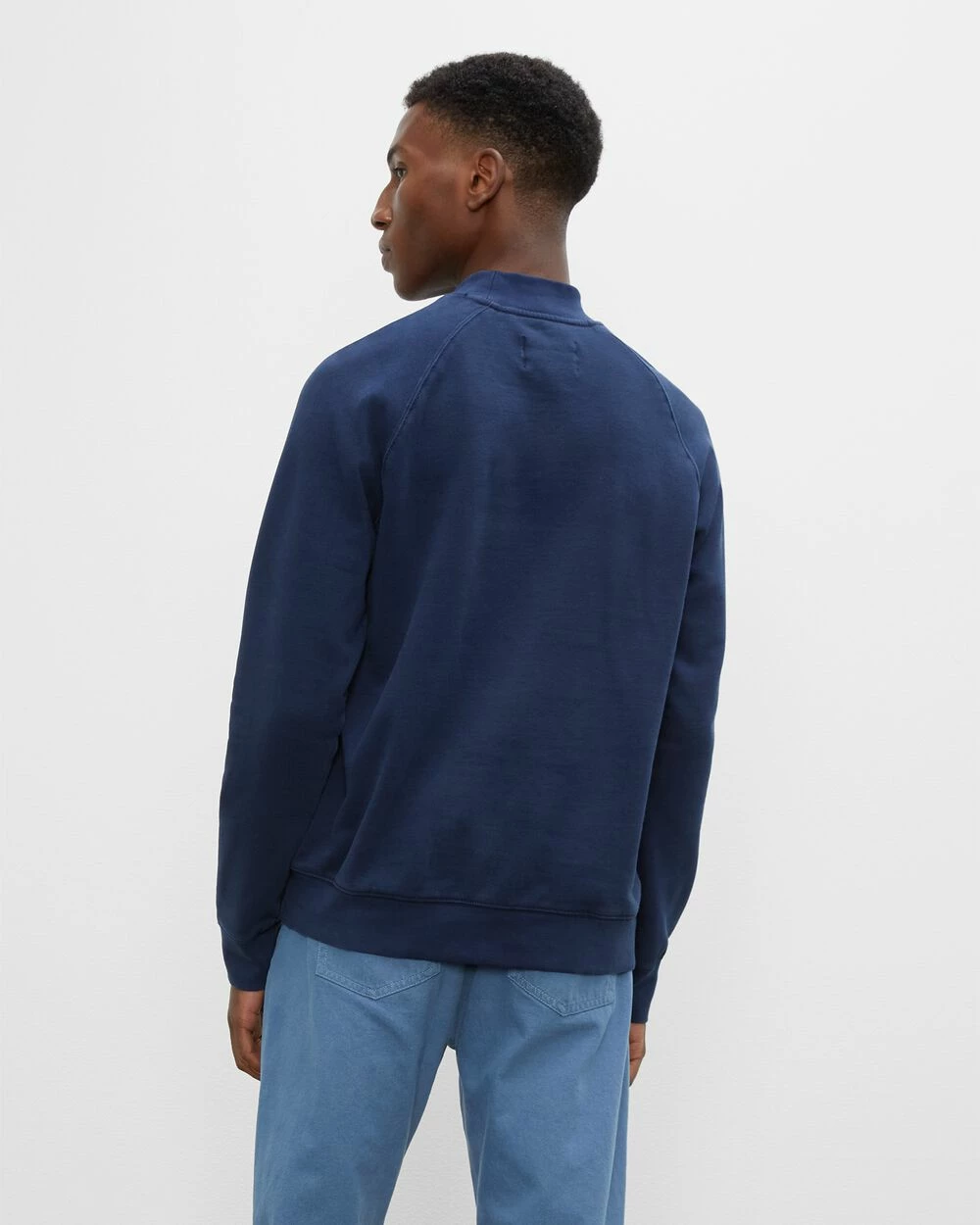 Get comfortable. Made from 100% cotton, this easy sweater is modified with a handsome mockneck. Polished enough for Zoom calls, but still comfortable enough for afterhours.