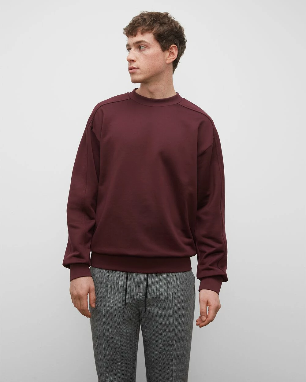Rise and shine. The subtle luster on this tech-terry crewneck sweatshirt is what will set it apart from the others in your collection. Perfectly weighted, this warm pullover is a great staple piece to carry you through the colder months.