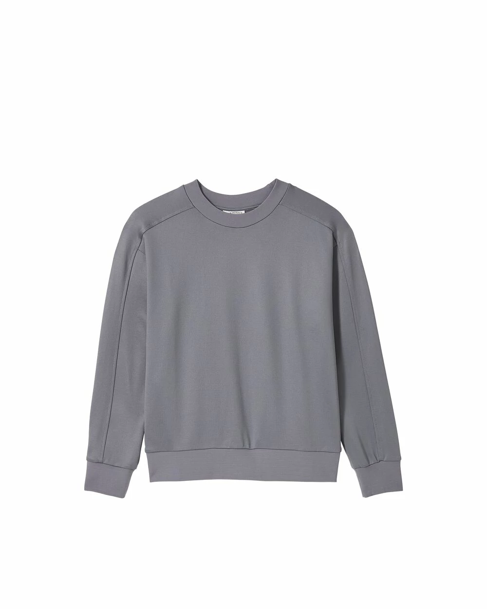 - Ribbed crewneck; long sleeves; banded cuffs and hem